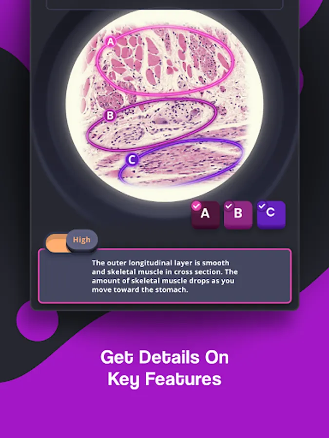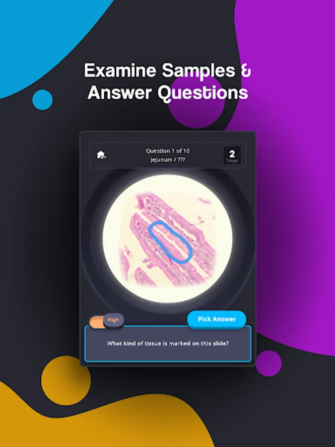 • Test your histology knowledge in game mode with three difficulty settings.