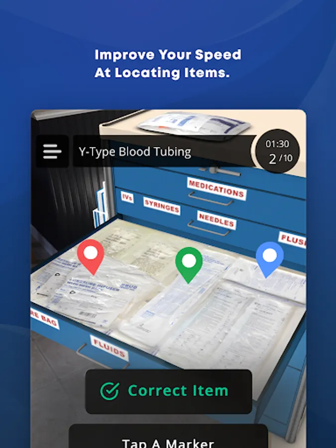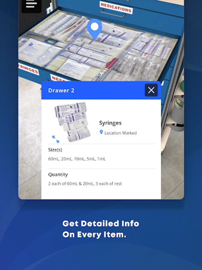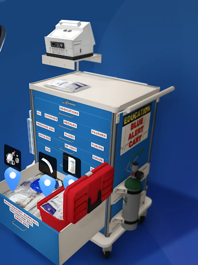 With the immersion of augmented reality, users can explore realistically scaled and highly detailed versions of their local organization's medical carts. The Medical Cart AR app includes different modes that allow for a more relaxed experienced, or one that pits users against the clock to find items as quickly as possible.