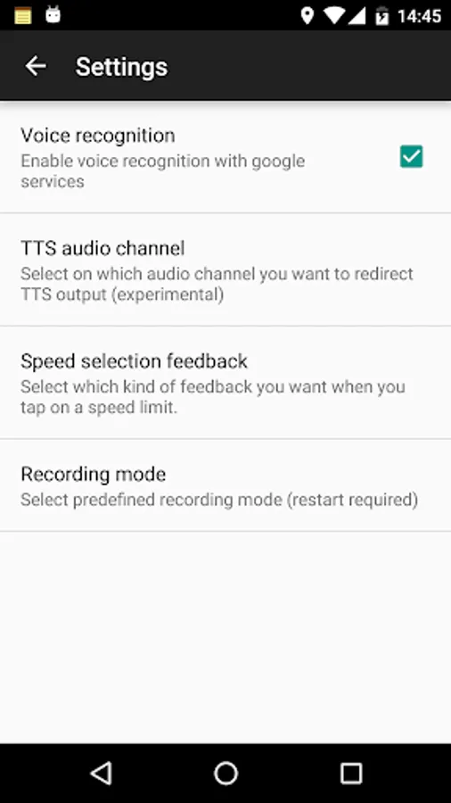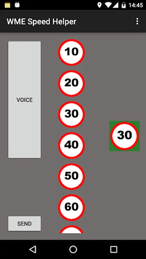 Instructions: you can choose between tachometer mode (default), scroll list or overview. In first two modes you can enable voice recognition, to record a limit with voice recognition just tap on voice button and pronounce the number. Otherwise, tap on speed signal on screen. On the right last recorded speed will appear, on a green background.