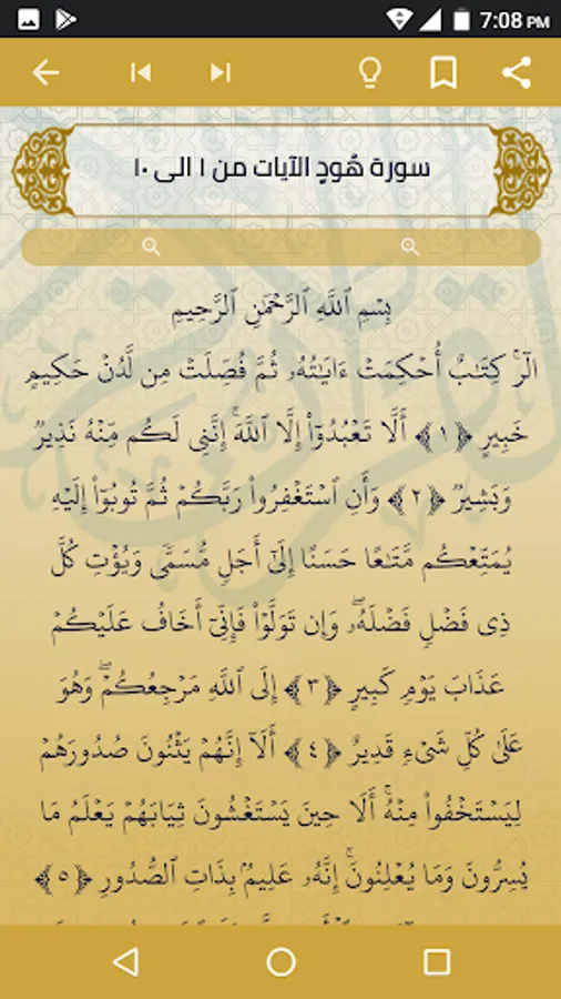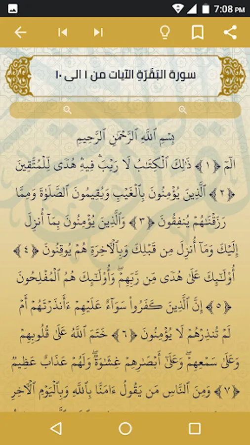 We organized the number of verses into 10 verses on each page as much as possible, while maintaining the usual form of the Qur’an. For a smooth reading, we can swipe the finger in any direction we want on the screen to read the next or previous pages.
