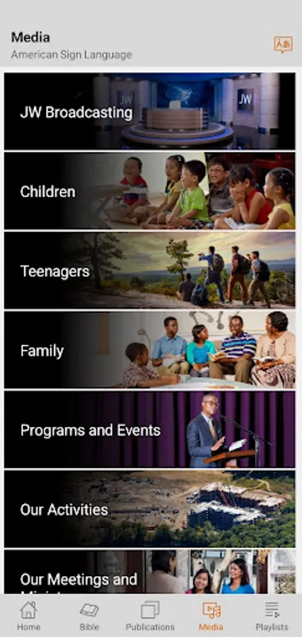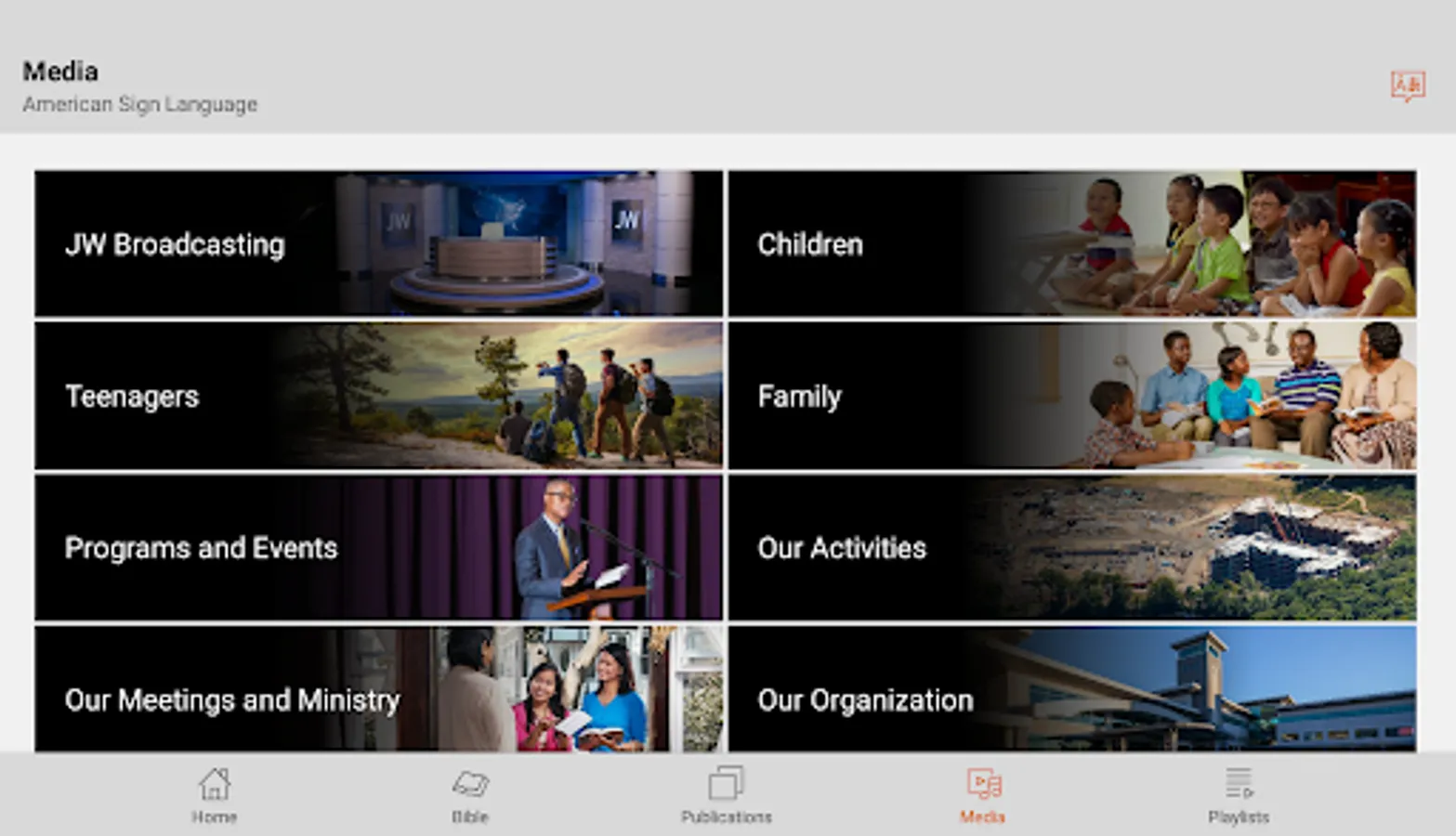 JW Library Sign Language is an official app of Jehovah’s Witnesses. It downloads, organizes, and plays sign-language videos from jw.org.
