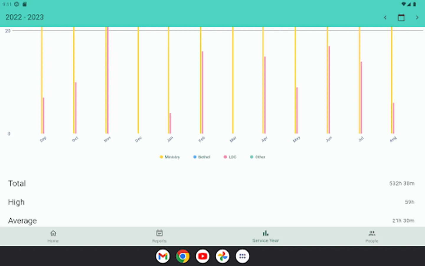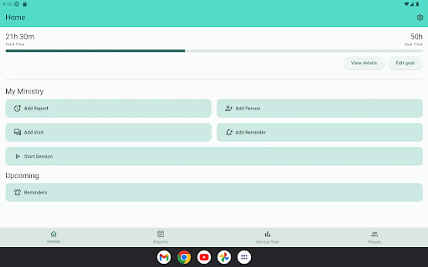 Stay organized and log your Bible studies, hours, placements, etc. Setup service goals, view service year progress, schedule your visits, and more!