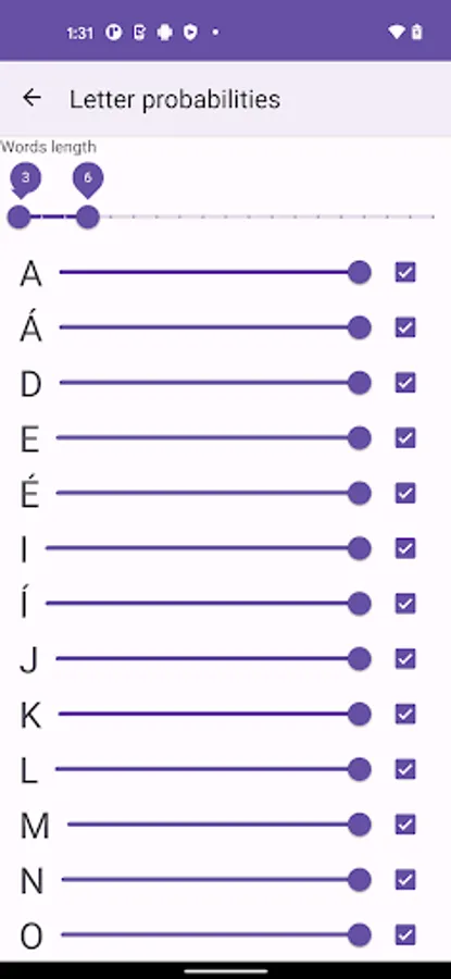 * Ability to set probabilities of individual letters