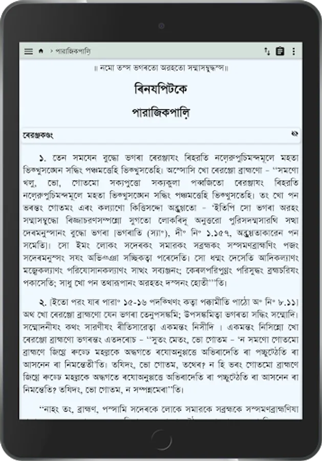 "T Pitaka" is a Buddhist religious teaching or Tipitaka app that added three languages. The app has been adapted into Pali, Bengali and English. First time, it was decided to make a comparable app only, but at work we were not limited to just only one way. And more, which manner we create the app, that the reader or the user will get more benefits generally, so we have worked keeping this in mind. Fainaly we say that, this is one more gift of the "Kalpataru" on the modern E-site platform.