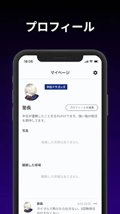 "Professional baseball watching log" is an application for professional baseball fans that allows you to keep a game watching log of your favorite team and interact with other fans.