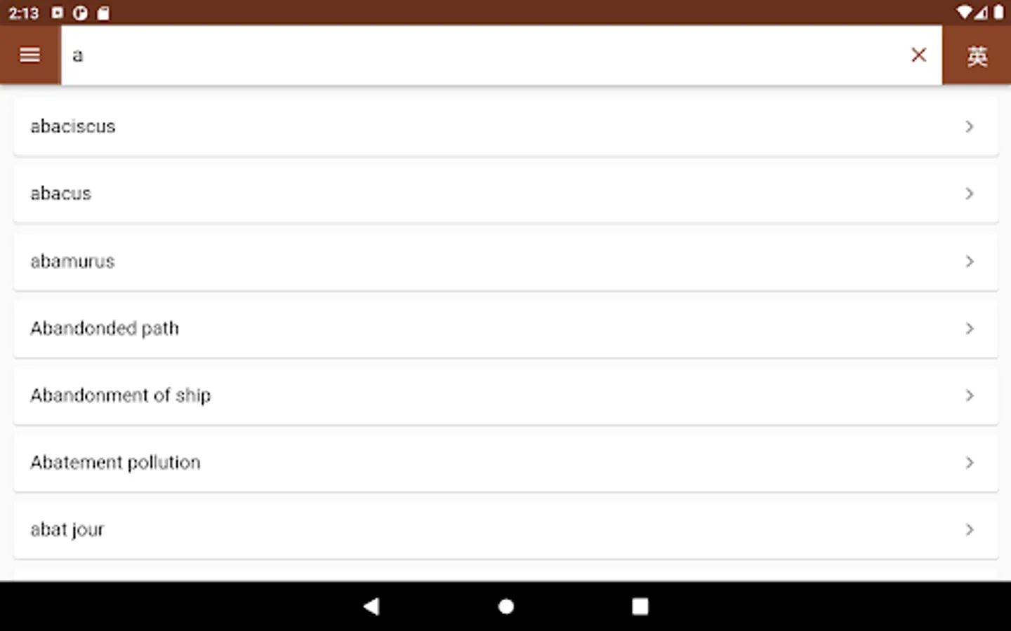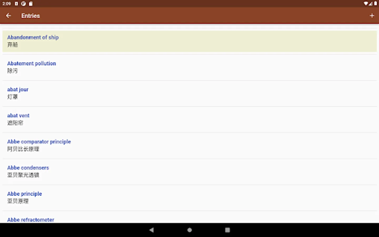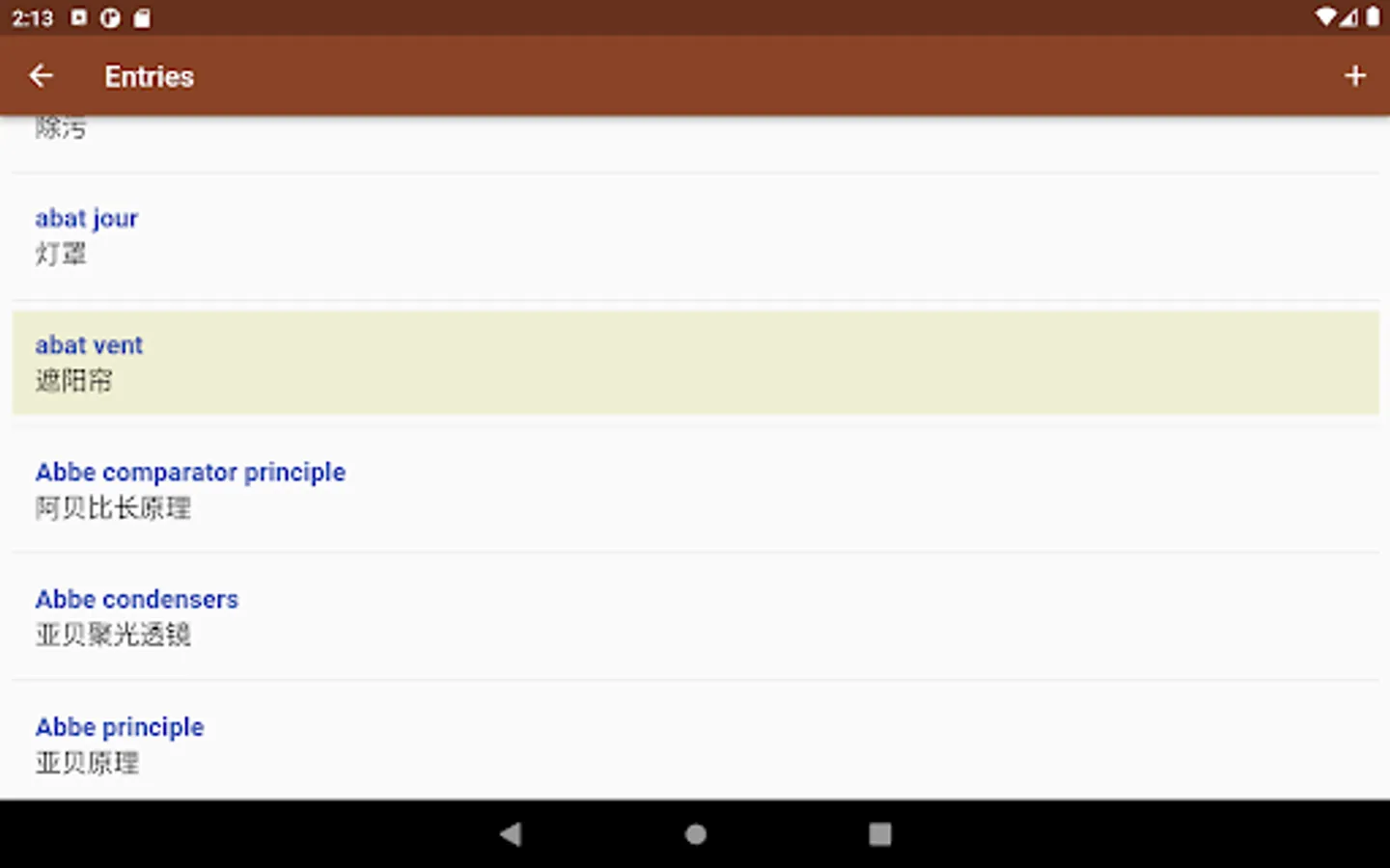 Please note: This app contains translation equivalents for each term, not explanations of each term's meaning.