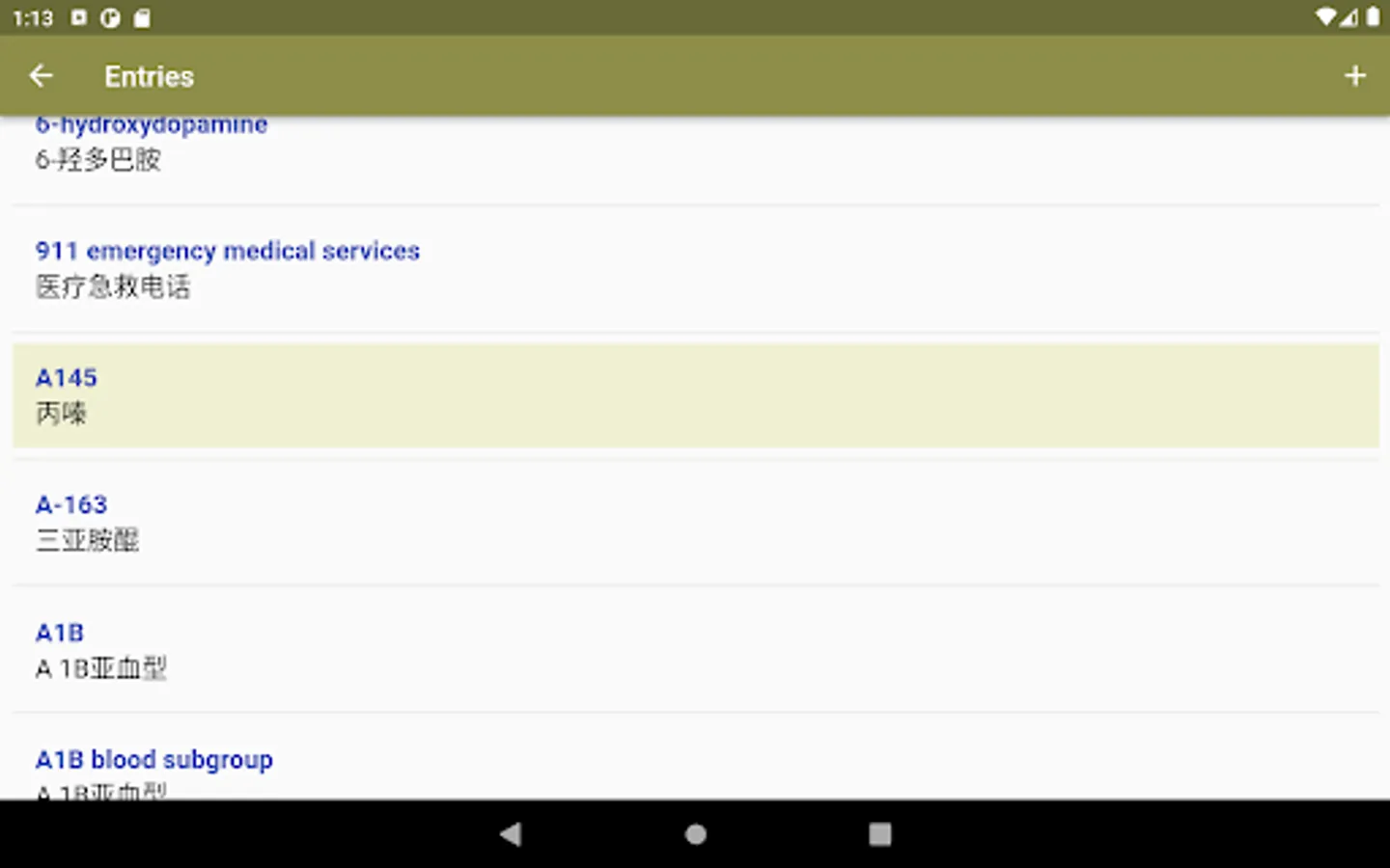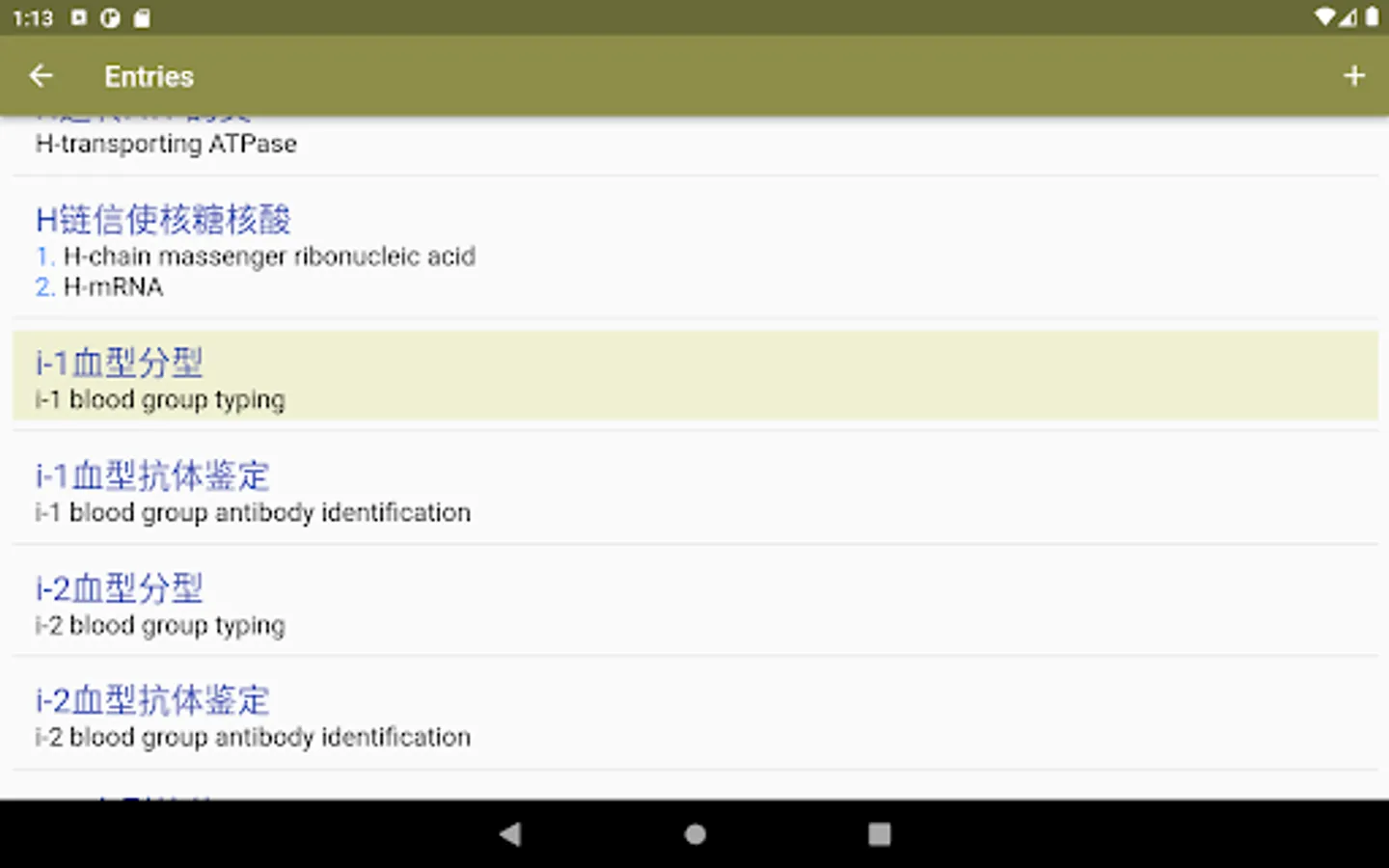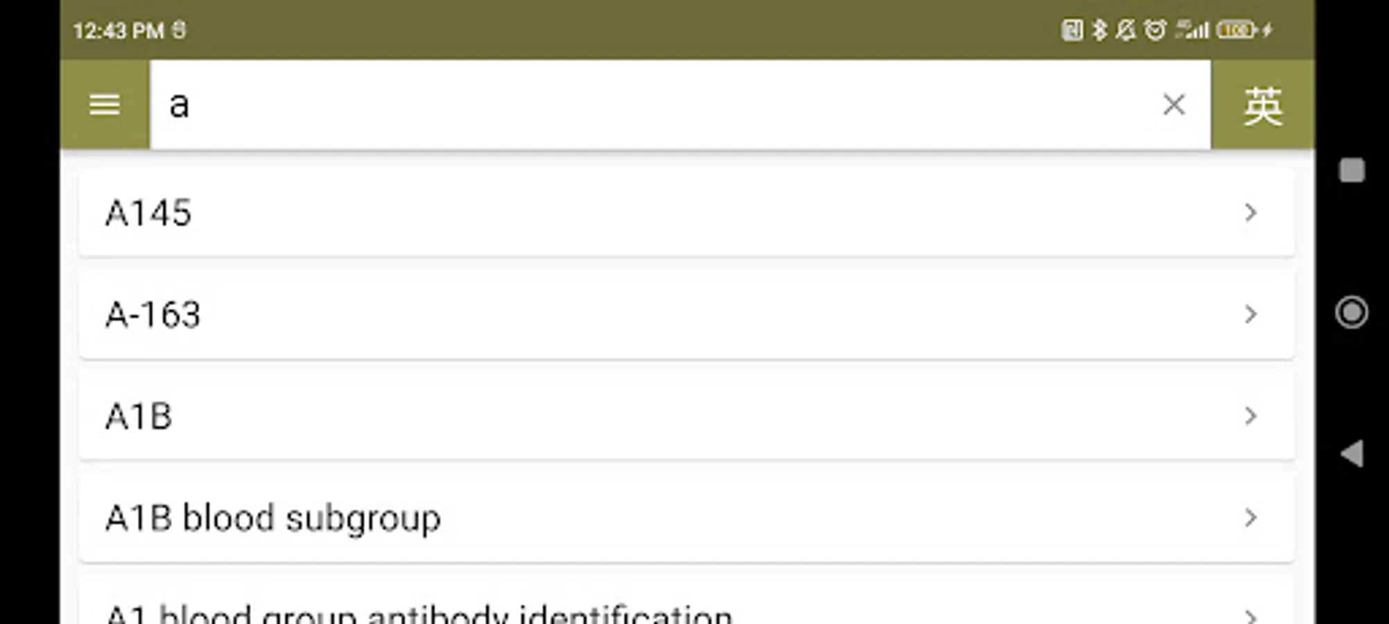 While several Chinese-English general vocabulary dictionaries are available for android, there are few specialized dictionaries that meet the specific needs of professionals, translators, and medical students, while those that are available are prohibitively expensive and of limited coverage. With this application, you get a database of technical terms with extensive coverage at your fingertips for a reasonable price.