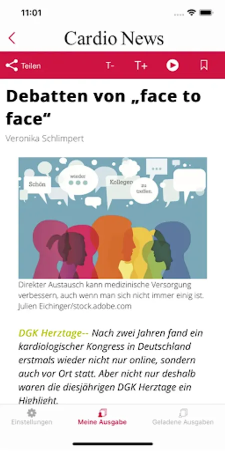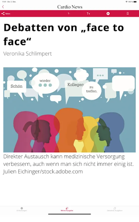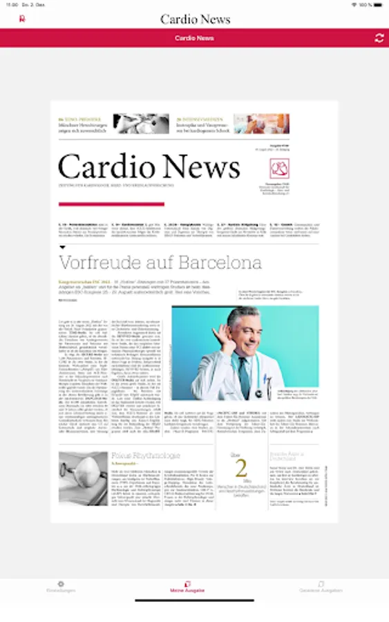 The Cardio News now in the new app for doctors. Read the digital edition of the newspaper for free or download the edition as an e-paper onto your smartphone or tablet. Save important items on your personal watch list. As a bridge between science and practice, Cardio News sees itself as a discussion and communication forum and sets a topic for each issue. Reports are competent and timely from all areas of cardiology as well as from related subject areas of internal medicine. The newspaper is published by the German Society for Cardiology - Heart and Circulation Research e. V. (DGK).