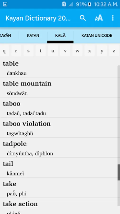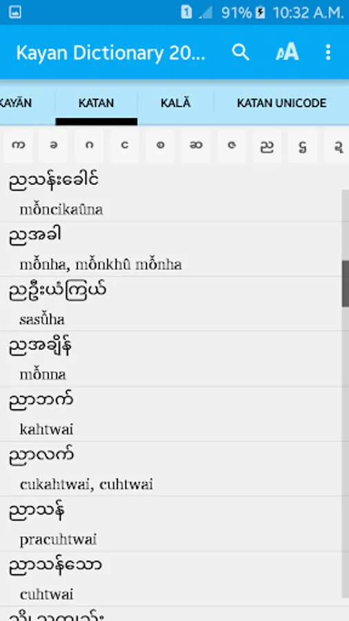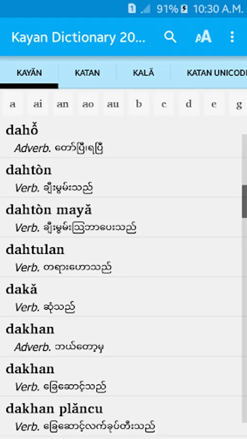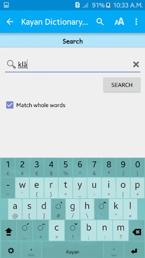 -Use the newest MultiLing O Keyboard to be able to search Kayan words with diacritic marks (Android 5 and higher)