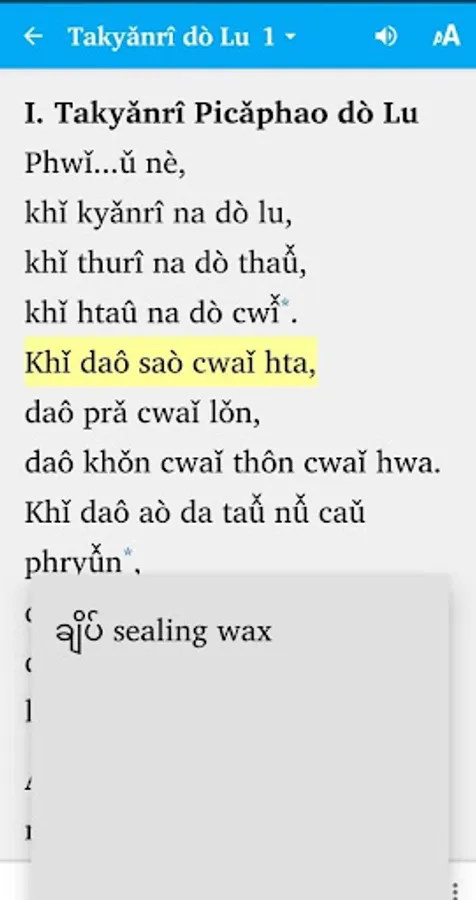 The text uses the spelling system in the Kayan Dictionary 2016 (also available on Google Play), so unfamiliar words may be looked up in there.