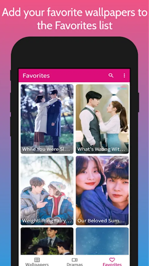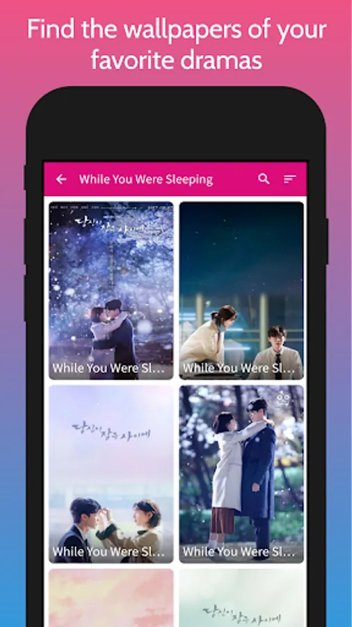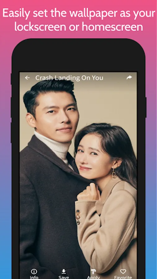 This app includes high quality wallpapers of different Korean dramas that you can set as your lockscreen or homescreen for free! If you just want the wallpaper, you can download them without setting them as wallpaper.