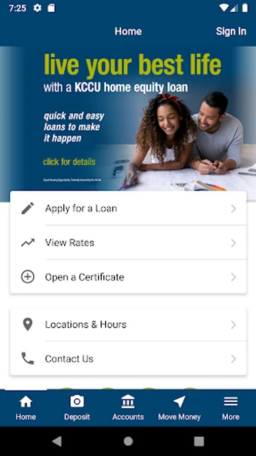 Our new mobile app provides members convenient access to Kellogg Community Credit Union's mobile website, mobile check deposit, mobile banking, branch & contact information, and help.