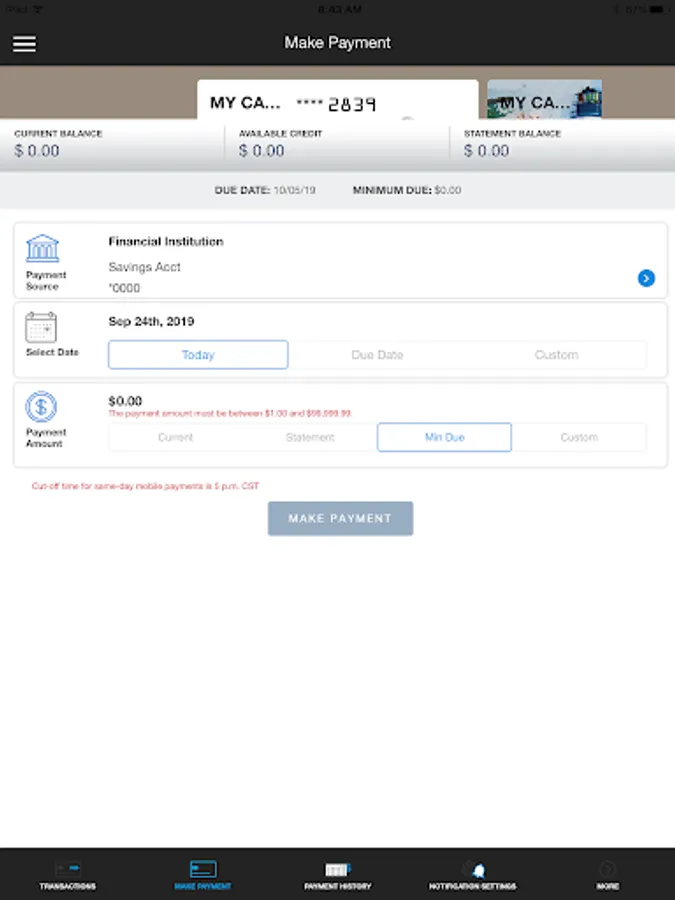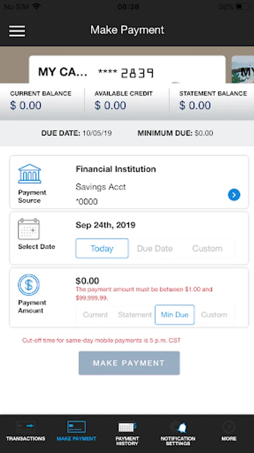 • View Keys debit and credit card account details.