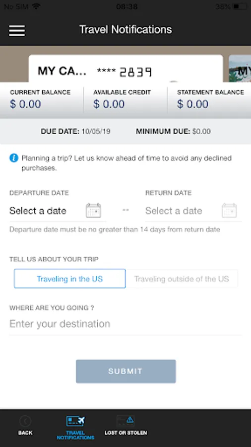 • Set debit and credit card travel notifications.