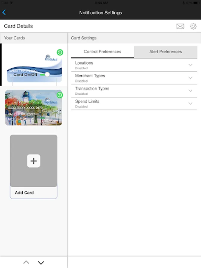 • Turn your Keys debit or credit cards off and on as needed.