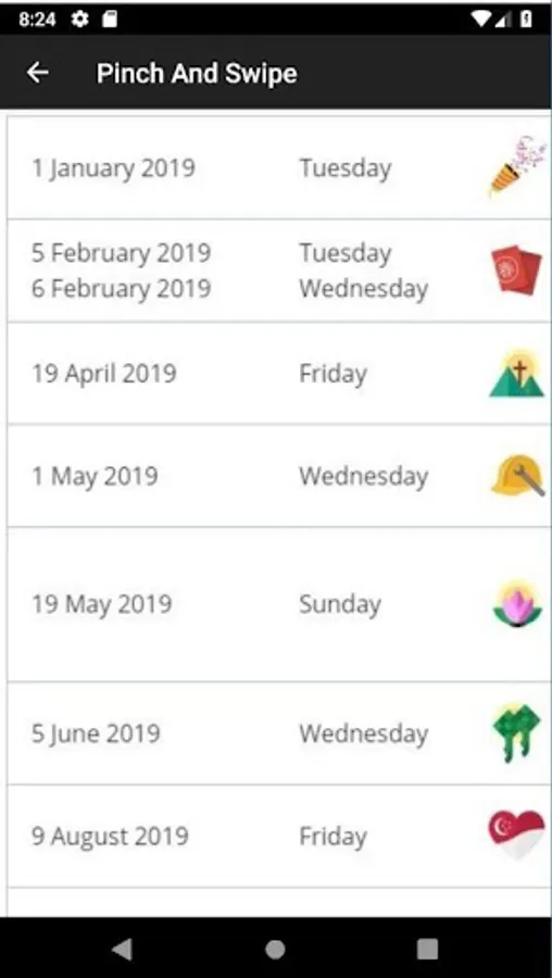- Provided public holiday list in Singapore Calendar
