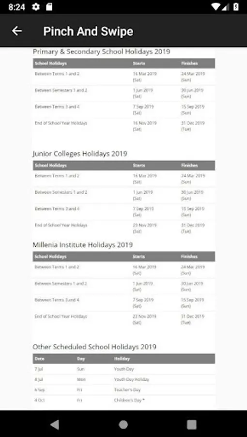 - Provided school holiday list in Singapore Calendar