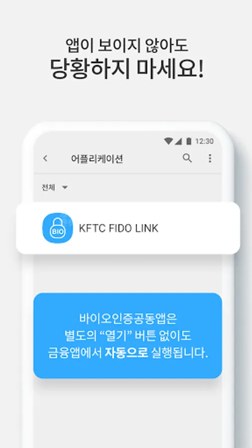 When a customer completes the biometric authentication registration in the financial company's financial app, the biometric authentication joint app does not require additional information registration, and the biometric authentication automatically runs without the need for the customer to run the joint app separately.