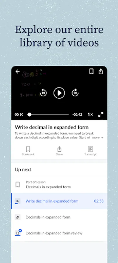 Already familiar with the Khan Academy website? Not all functionality is available in this app. Community discussions, computer programming content, test prep, parent tools, teacher tools, and district tools should all be accessed directly at http://khanacademy.org.