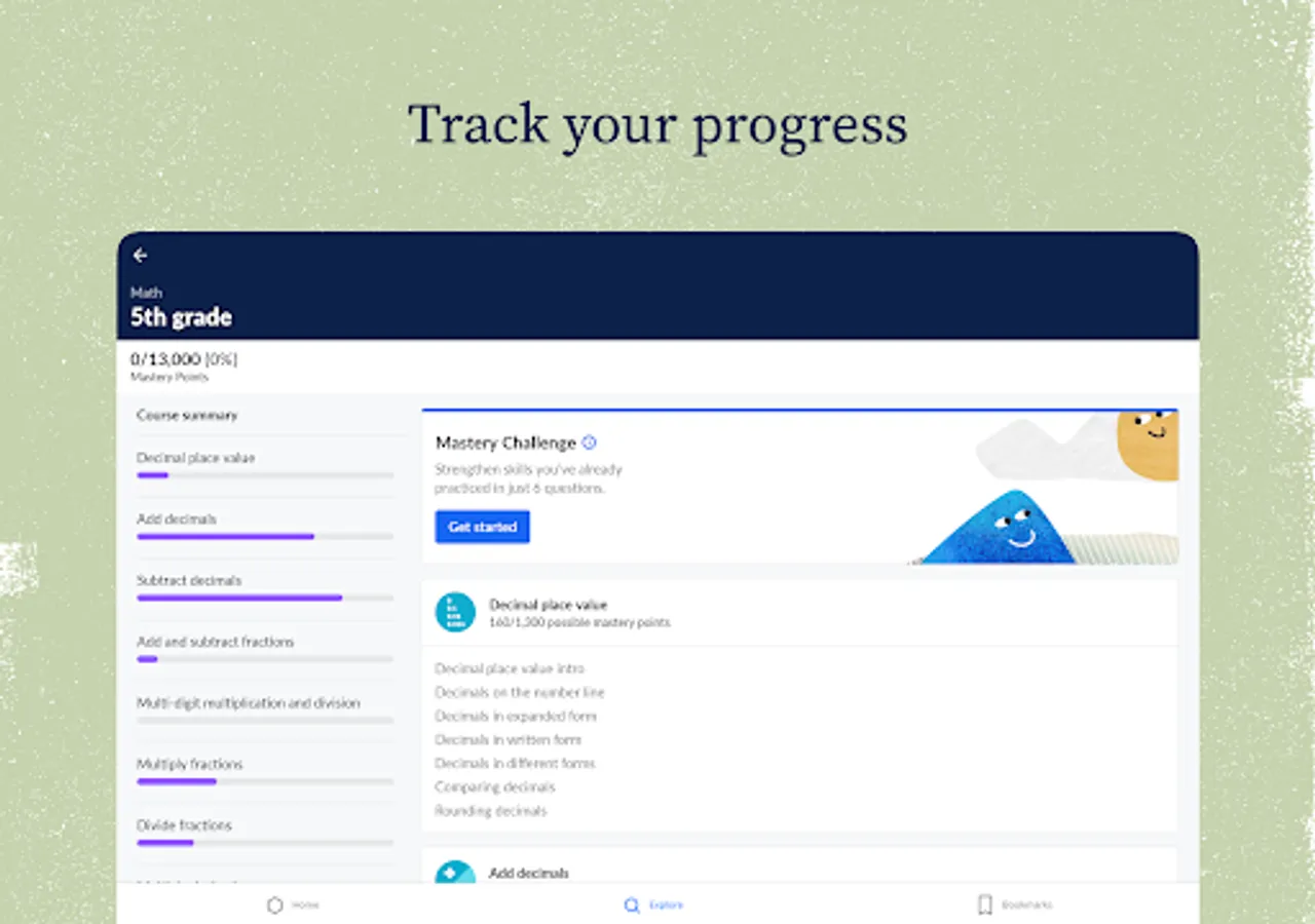- Pick up where you left off: Tailored to your current learning level, our mastery system gives instant feedback and recommendations on exactly which skills and videos to try next. And, if you choose to create a free account, your learning syncs with http://khanacademy.org, so your progress is always up-to-date across all your devices.