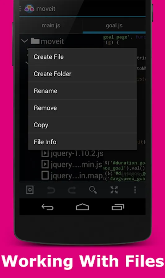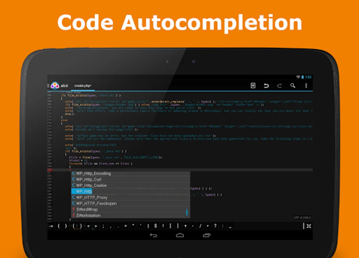 It a unique mobile software for web developers. It allows you to create your own html, php, javascript, css and other pages or edit already existing. Also you can manage work with remote projects through FTP, FTPS, SFTP WebDAV as well as managing your local files and folders.