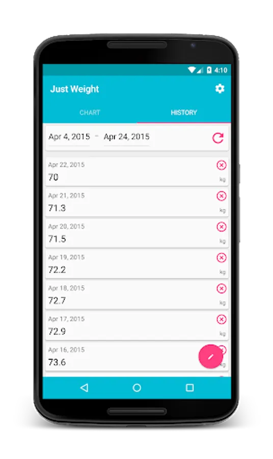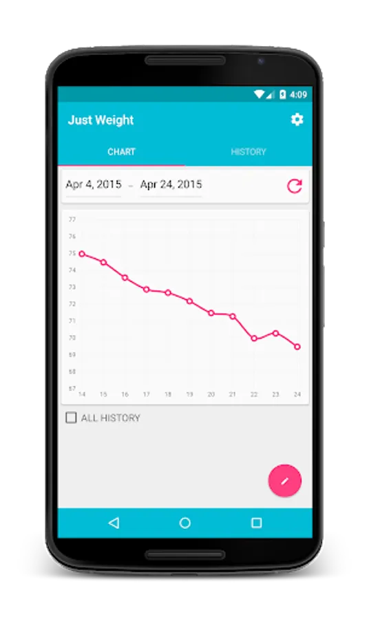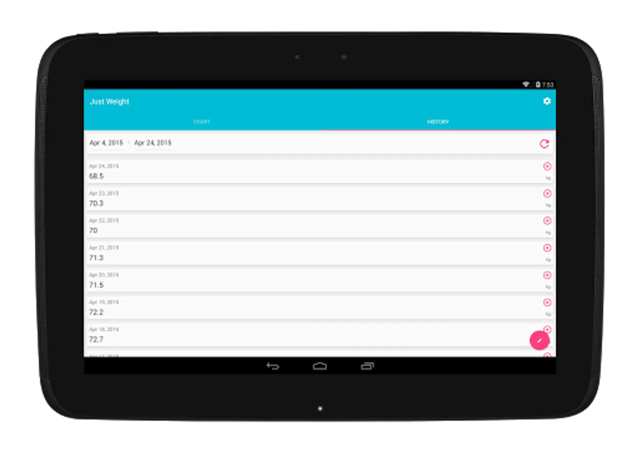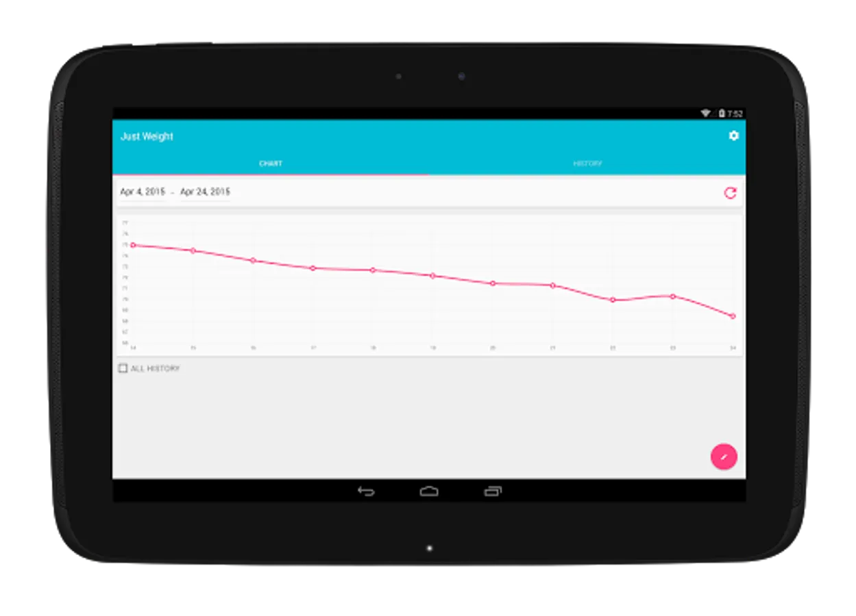 Philosophy of this app is very easy: one day - one weight record. Simply spend 1 second a day in order to get a pleasure watching your progress in feature. Eat a diet and check progress after a while on beautifully animated chart. App make process of losing your weight easier.