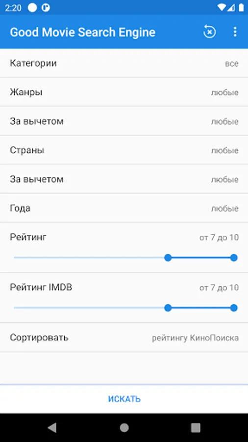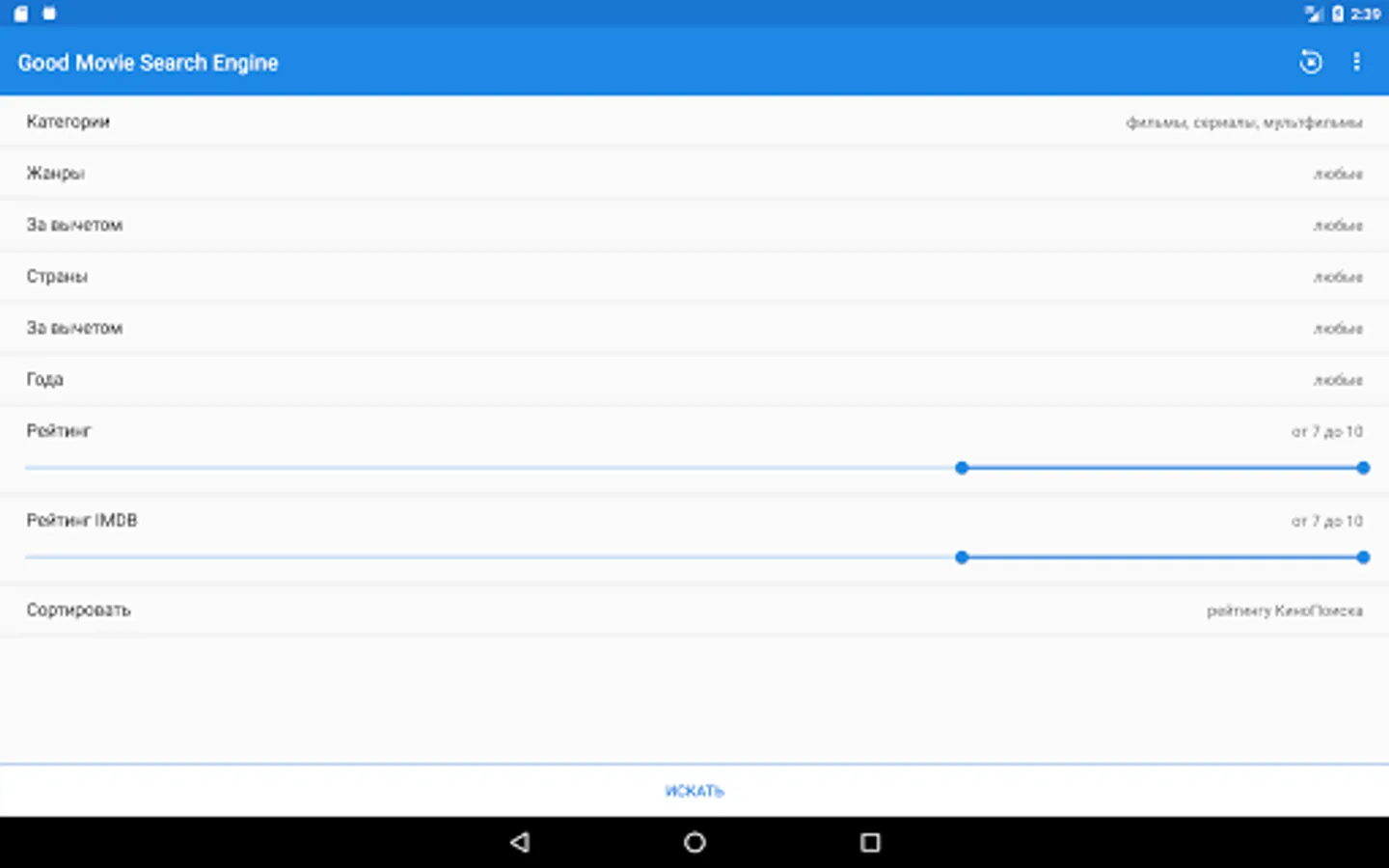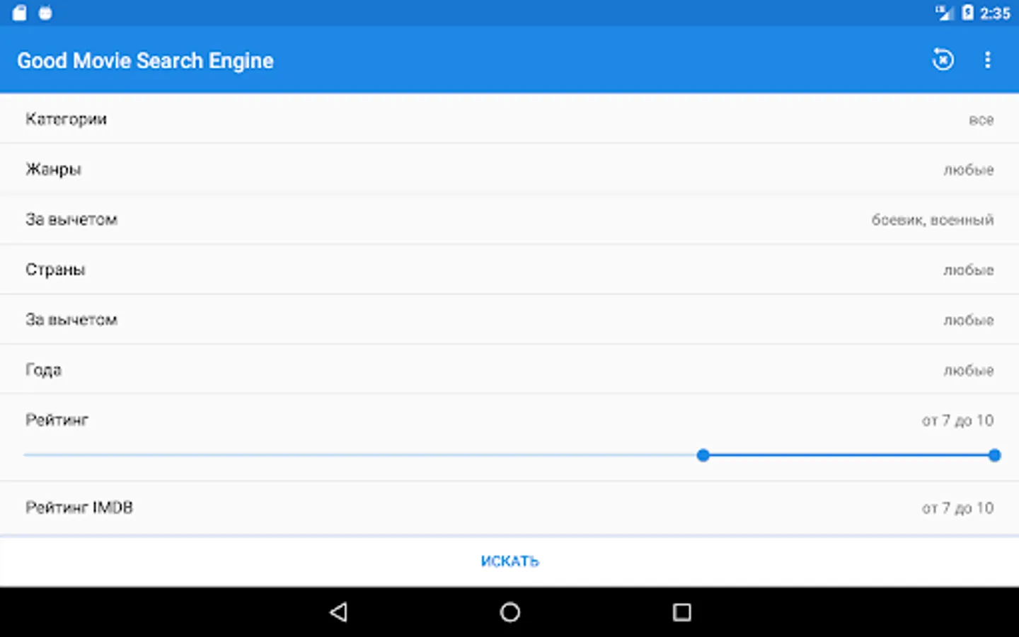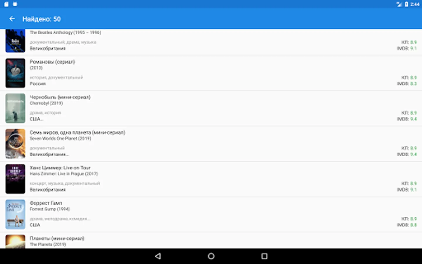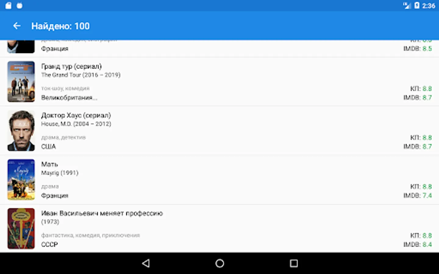 GMSE uses a base of films and a search engine from the kinopoisk.ru site, more conveniently adapting it for the mobile version of the application.