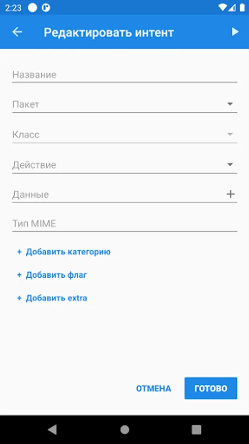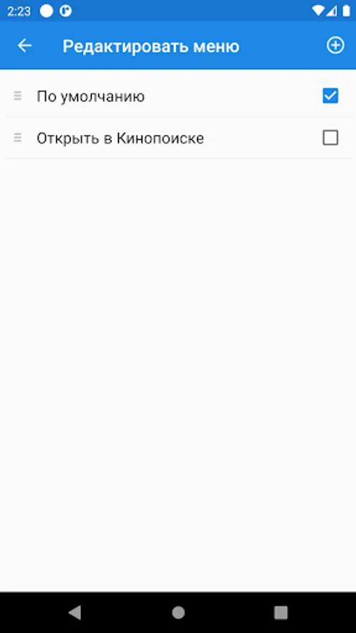 - editing the context menu called on the found movie. The ability to fine-tune it using the built-in intent creation tool, which can use variables such as movie ID, title, Russian title, year, etc.