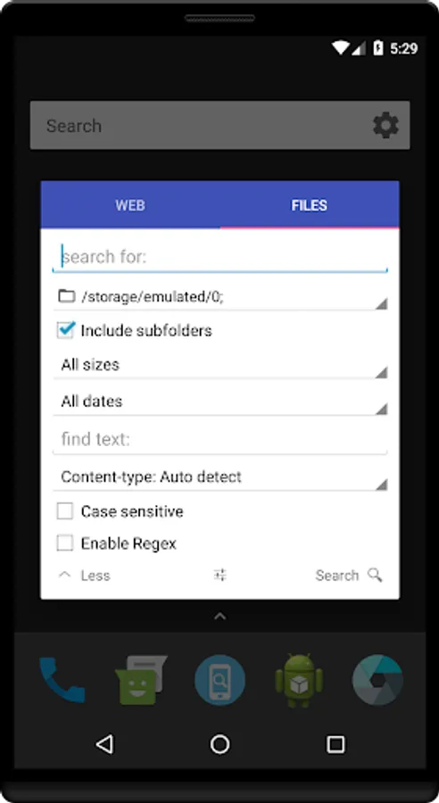 2. Search for files or text in files (like grep) on the smartphone file system. You can use root capabilities for more thorough and in-depth searches.