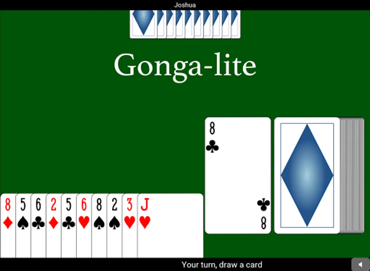 Gonga is a Cypriot version of Gin/Rummy played with 10 cards for points over multiple hands. The object of the game is to get rid of all your cards in each hand leaving your opponents holding as many points as possible so they accumulate the table target points before you.