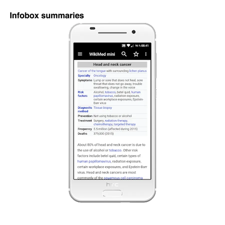 MiniMed is the light version of Wikimed, which is based on Wikipedia's Project Medicine and contains a lot more details in terms of symptoms, treatment and risk factors (but it also is much bigger, that's why we made a shorter version).