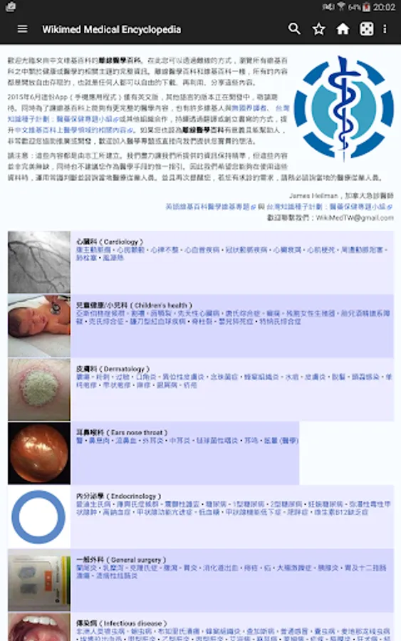 The offline version of Medical Wikipedia is the largest health care library on Android. Even if you are currently in an area where it is difficult to connect to the Internet, or on a moving boat, or even a border area, you can now use the most contemporary and up-to-date medical database for free !!!