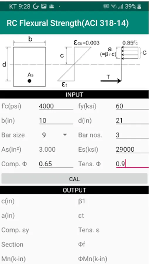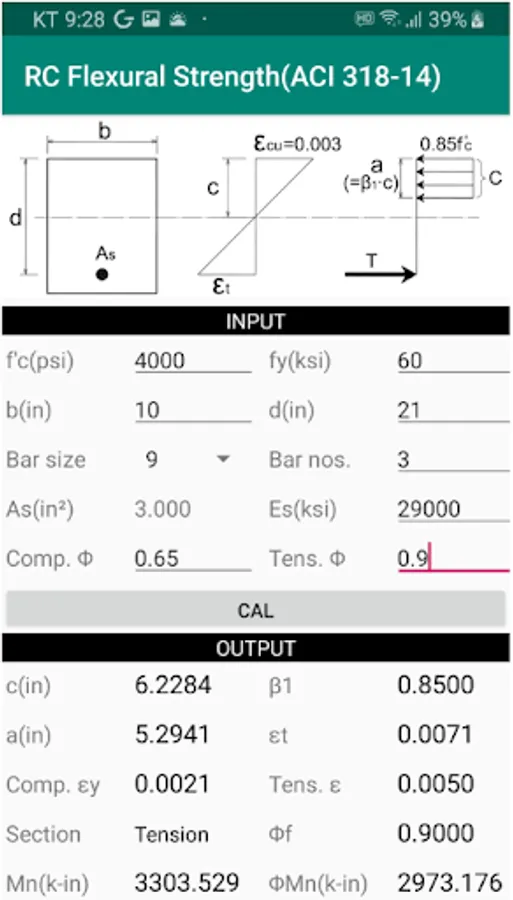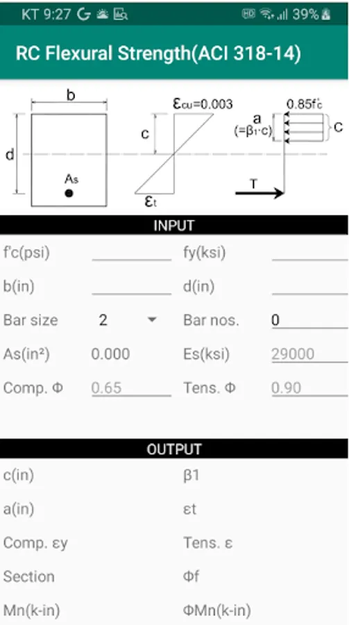 Singly rectangle RC beam flexural strength according to ACI 318-14