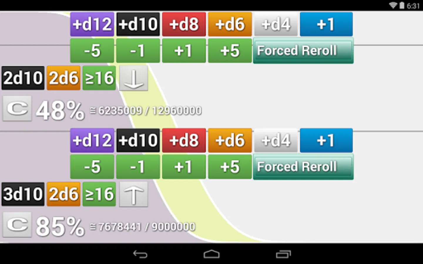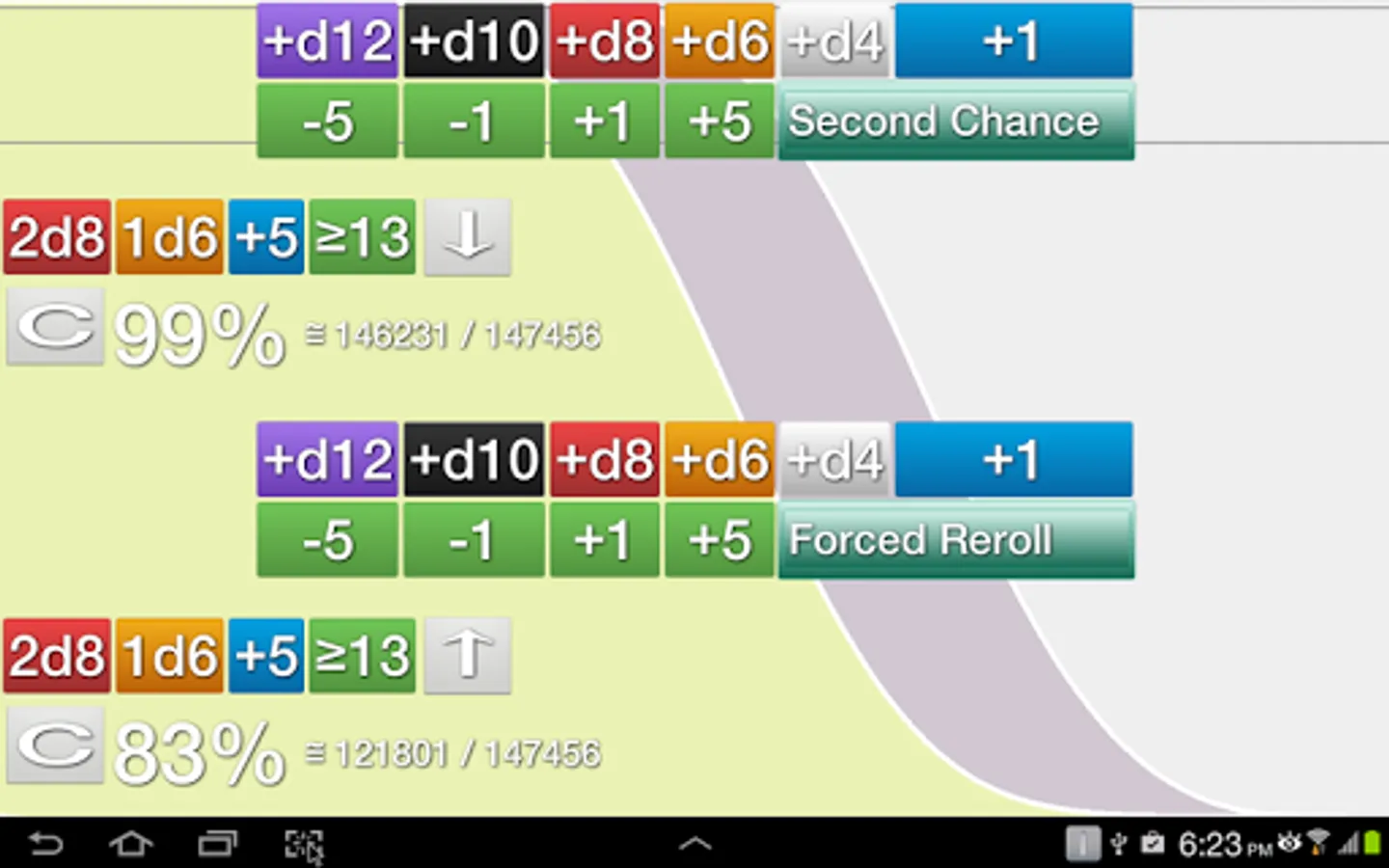 This is a small android app that calculates the probabilities of multiple dice exceeding a specified number. It is particularly useful when playing the game Pathfinder Adventure Card Game