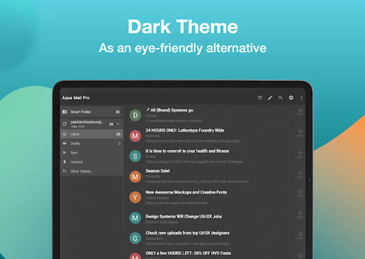 When we engineered our email client for android we put customization as one of our main goals. After a decade of advancements, new intuitive features & settings, we can say that Aqua Mail is one of the most customizable email clients on Android mobile phones and tablets. Features include: