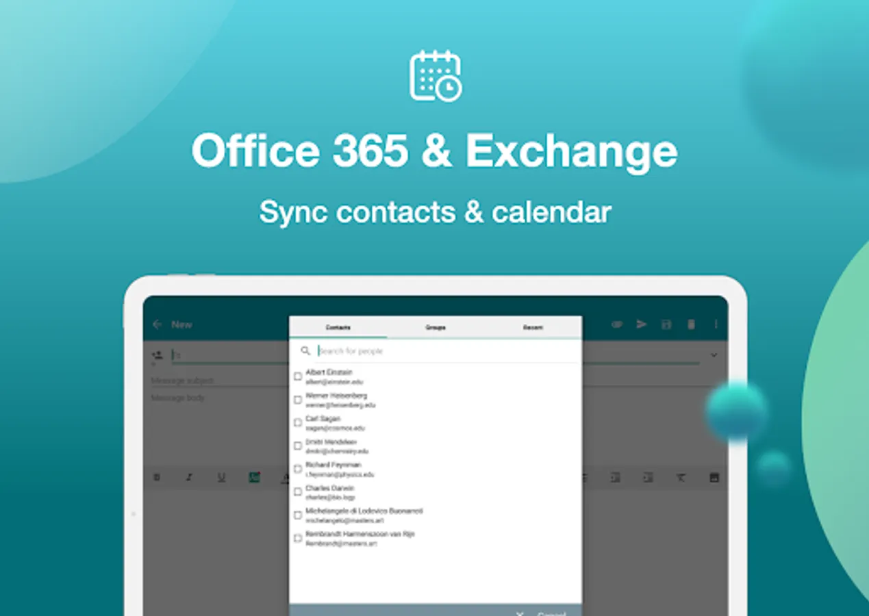 • Contacts and Calendar Sync for Exchange and Office 365 - compatible with any Calendar app or widgets
