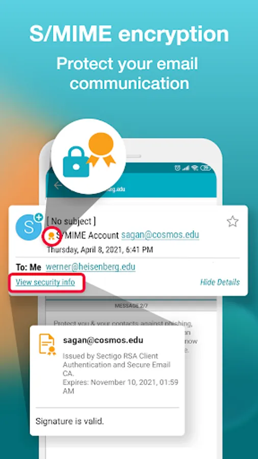 • End-to-end Encryption - use S/MIME certificates to send/receive signed or encrypted emails and prevent phishing threats and data leaks