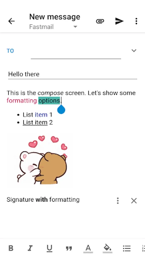 • Formatted compose (from color to bulleted lists)