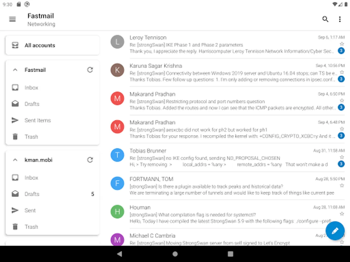 • Combined inbox shows messages from all accounts / folders