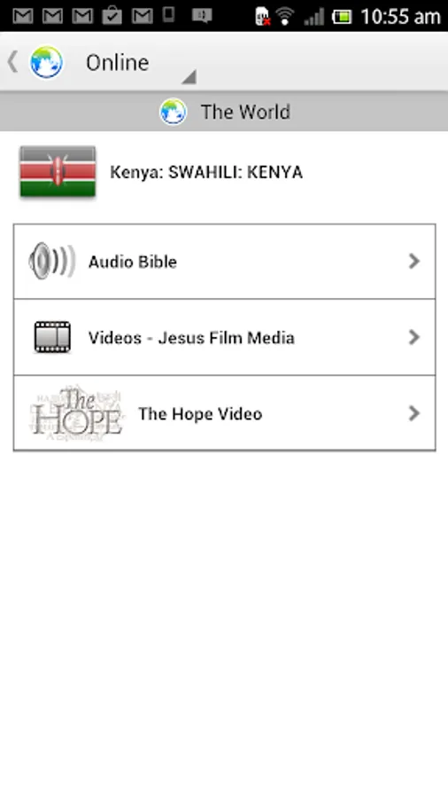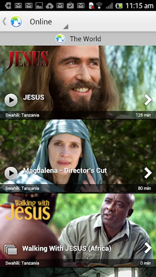 language and Kolo World will retrieve videos from the Jesus Film Media catalog, along with available