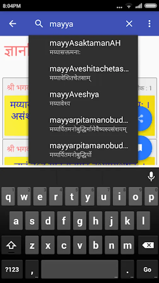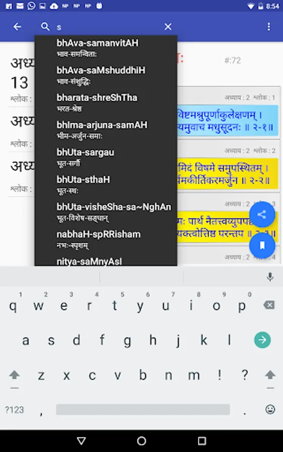 - Quick Search by typing words directly in hindi/sanskrit in devnagari.