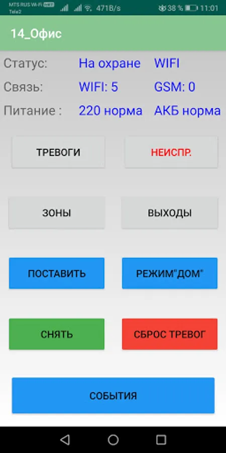 With the Defensio MK application, you can control your fire and security system: arm and disarm, control outputs, view the event log, main and backup power status, signal level and type of communication channels.