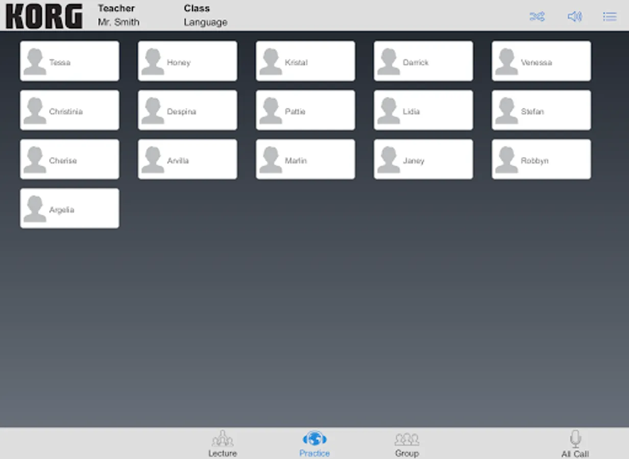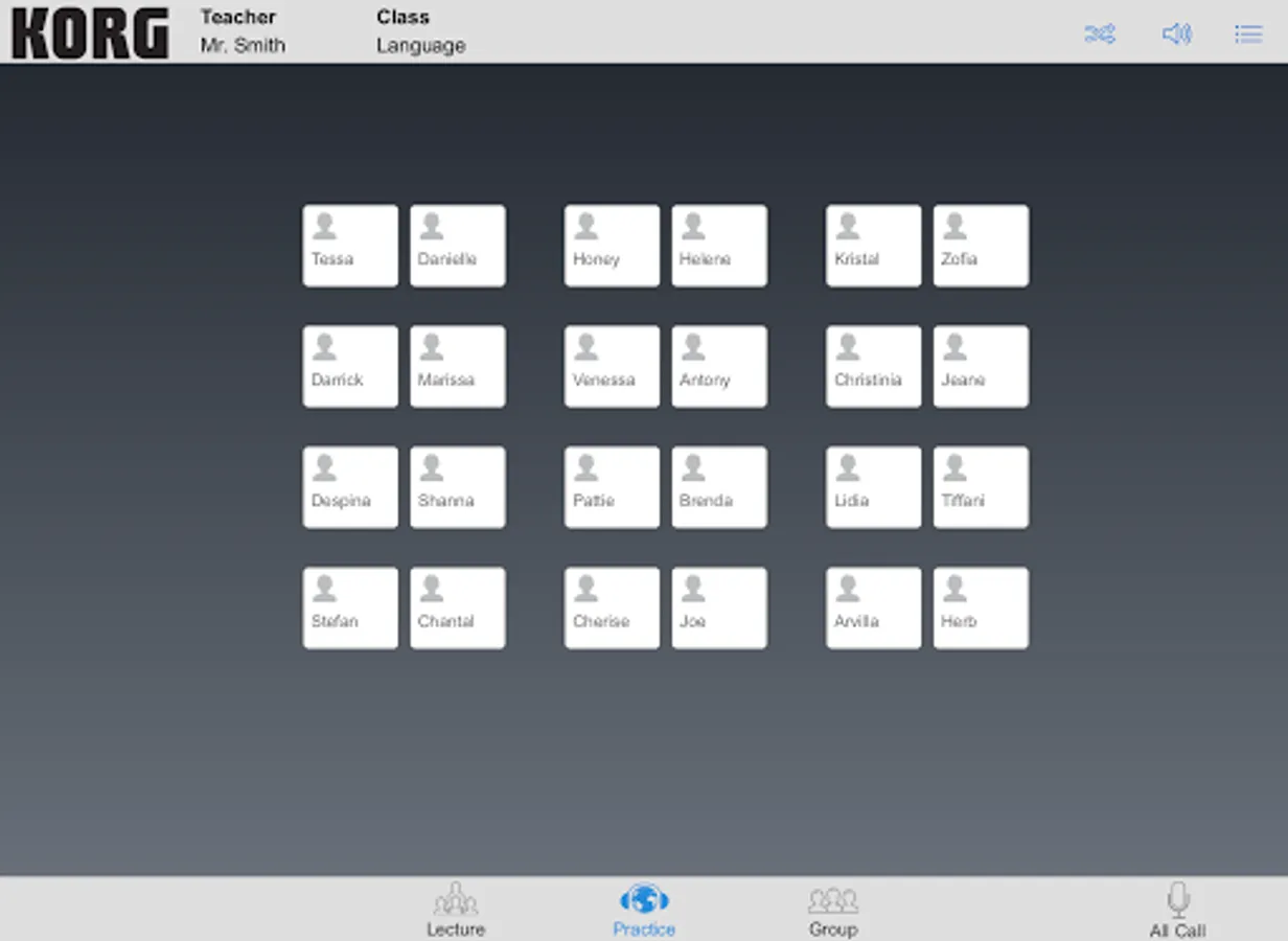 Practice mode is used when the students are working independently. Each student hears only his or her own instrument or computer. In Practice Mode, the teacher has the option of “eavesdropping” on the student and initiating 2 way communication with the student for individualized instruction.