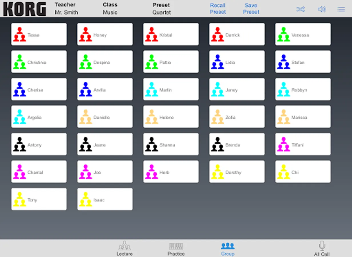 - Performance Mode allows the teacher to hear all of the students and their instruments at the same time while each student can only hear themselves, their instrument and the teacher’s audio.
