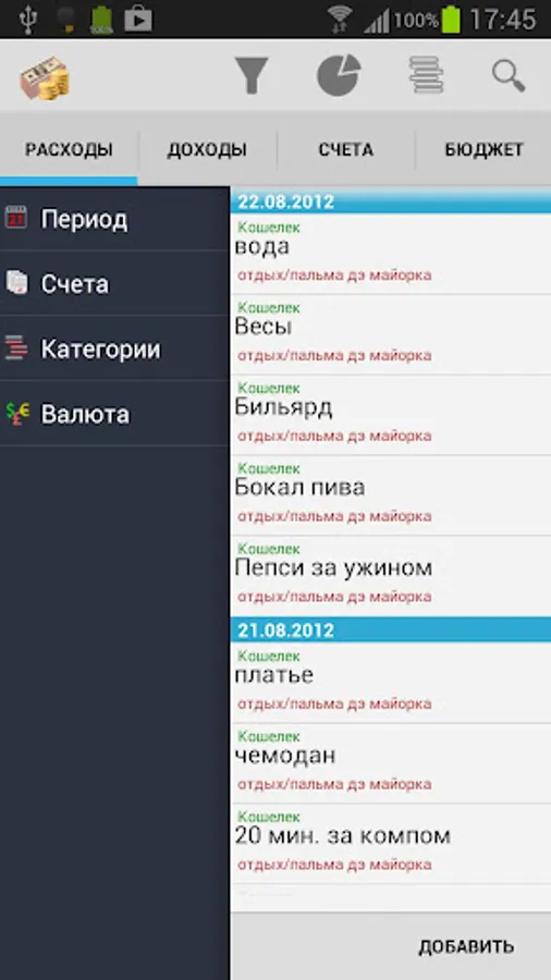 The program can be synced with www.koshelek.org and it gives you an opportunity of accounting using both the application and web-site.