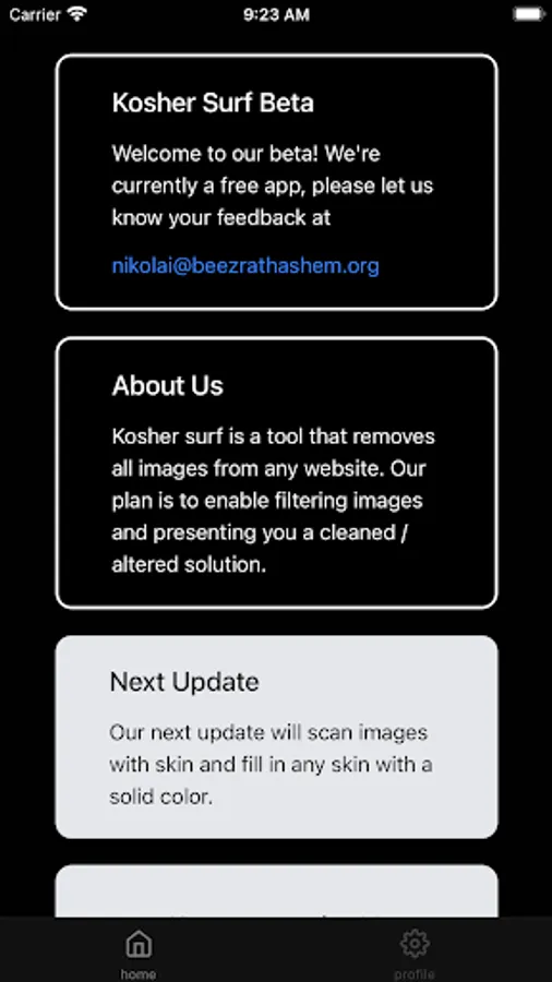 Are you tired of stumbling across inappropriate or immodest pictures on the internet? Introducing Kosher Surf, the app that makes browsing the web a more wholesome experience. With its advanced filtering technology, Kosher Surf ensures that you only see the content that you want to see. Whether you're browsing for work, school, or leisure, you can trust Kosher Surf to keep things clean. So why settle for a regular old browser when you can surf the web with confidence using Kosher Surf? Download it today and start enjoying a cleaner, more wholesome internet experience.
