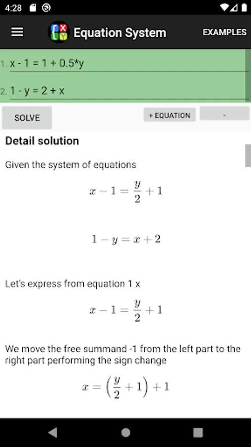 Symbolic solution of systems of equations, for systems of linear equations with detailed solution.