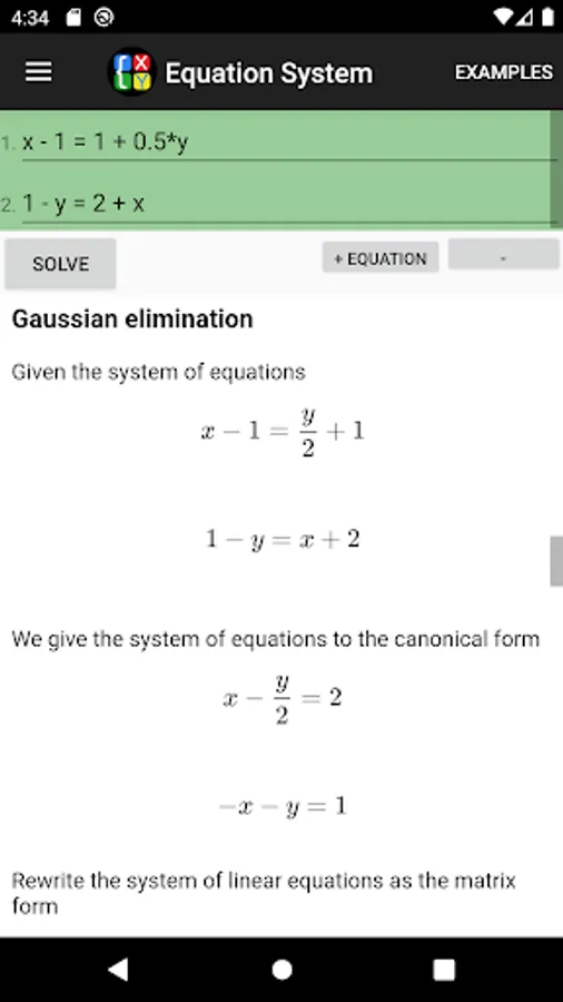 This calculator provides a ✪ detailed step-by-step solution ✪ for systems of linear equations, such as:
