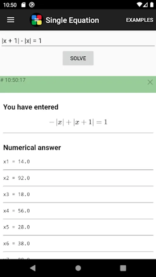 [✔] A equation with a module (for example, |x + 1| + |x^2 – 7| = 20)