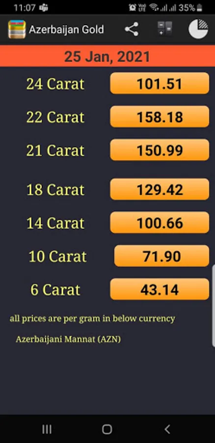 This app provides local gold price in all cities of Azerbaijan. Internet connection is required to run this app.